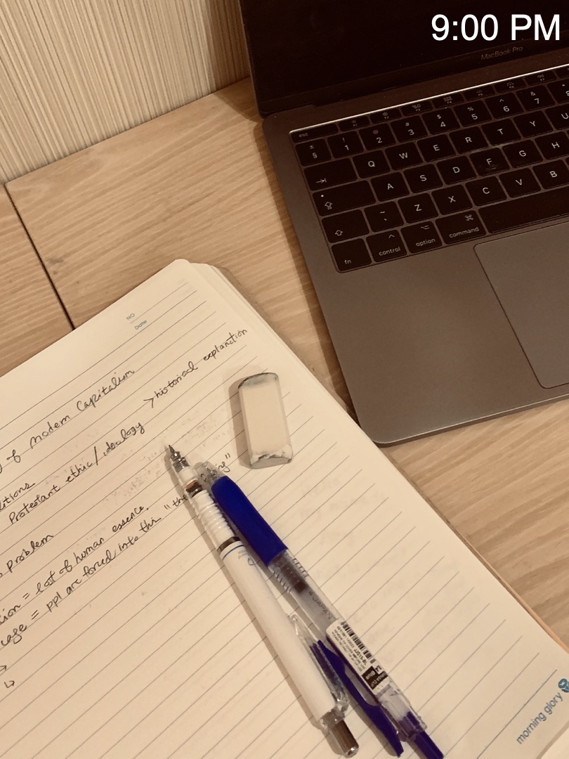 Afterwards, one opened her books to start studying for her midterm, whereas the other was finishing her work for the day.