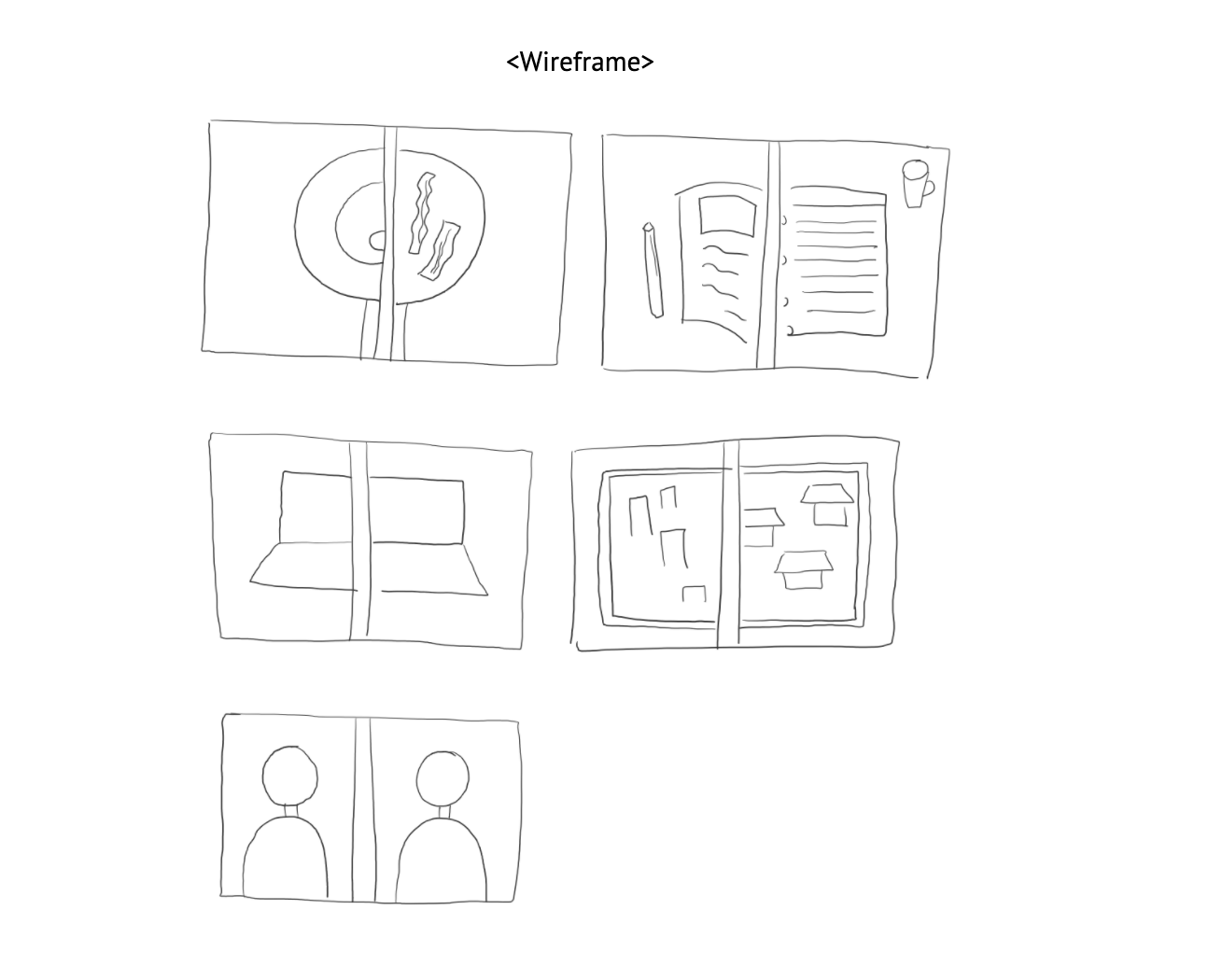 Our final product is surprisingly pretty similar to what we envisioned in our initial stage. However, unlike the wireframe below, photos aren't arranged so that they are symmetrical to one another. Also, in the very beginning, we wanted to make it similar to the NY Times article "Dear Architects: Sound Matters" so that videos are played when the mouse is hovered over them, but due to technical/time constraints, we decided to replace them with images and audio recordings.